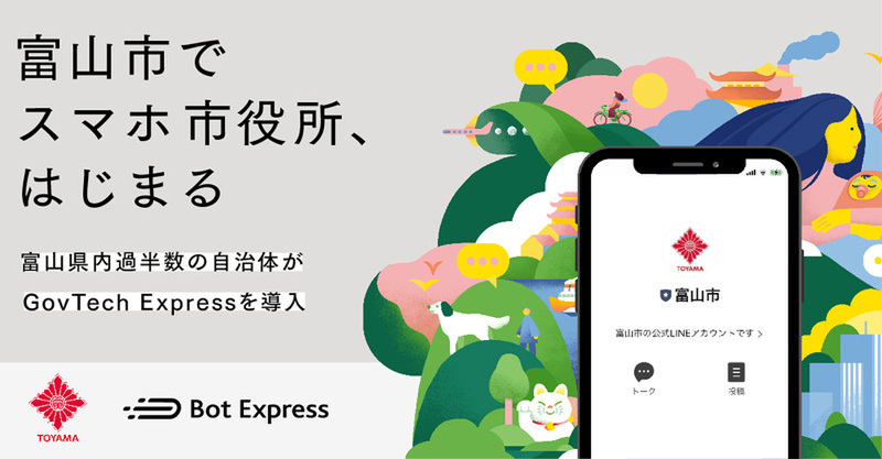 Bot Expressは8月10日、同社が提供する「GovTech Express」を活用し、富山市が「スマホ市役所」を8月2日に開設したと発表した。