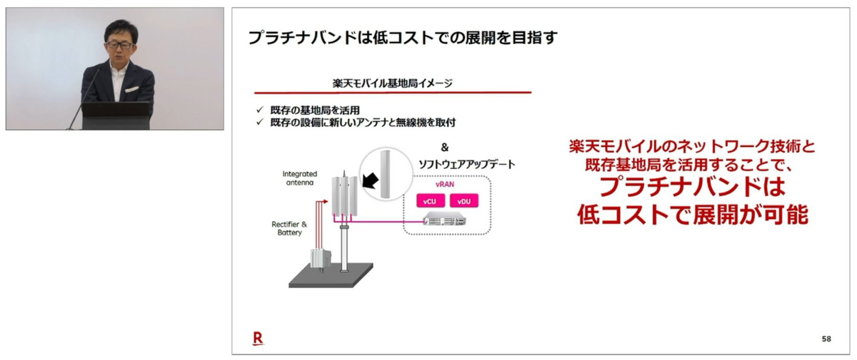 一方で楽天モバイルは、今秋にも予定されている700MHz帯の新周波数の割当に期待を寄せており、今年末~来年初頭での電波発射の開始も目論んでいる。となると、その分の設備投資も必要となる。ただし、同社のプラチナバンドの設備は既存の設備に新しいアンテナと無線機を取り付け、仮想化された無線アクセスネットワーク(vRAN)のアップデートで対応可能なため、前述の大きく削減された設備投資額でプラチナバンドの展開も可能だとした。