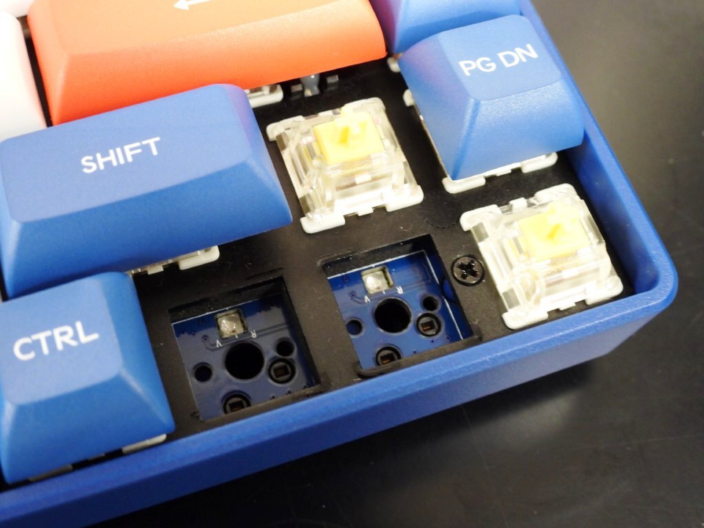ブルーとレッドが映えるカラーリングを採用し、省スペースで携帯性にも優れた65%キーボード。アルミニウムフレームと吸音材の組み合わせでタイピング時の打鍵音を抑え、高い静音性と耐久性を実現している。Gateronキースイッチを採用するほか、キースイッチ換装にも対応している。