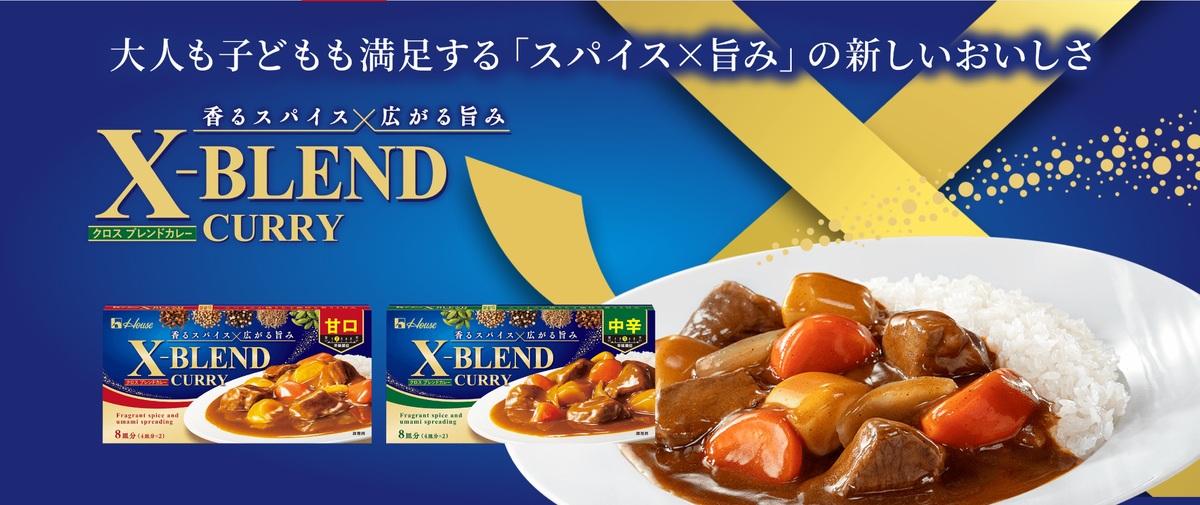 X-BLEND CURRYは、ハウス食品の三大ブランド「バーモントカレー」「ジャワカレー」「こくまろカレー」に続く、新たな軸のルウカレーとして「スパイスフルなおうちカレー」というポジションを打ち出すブランド。「家のカレーが、スパイスフルに。」というブランドコピーを掲げています。