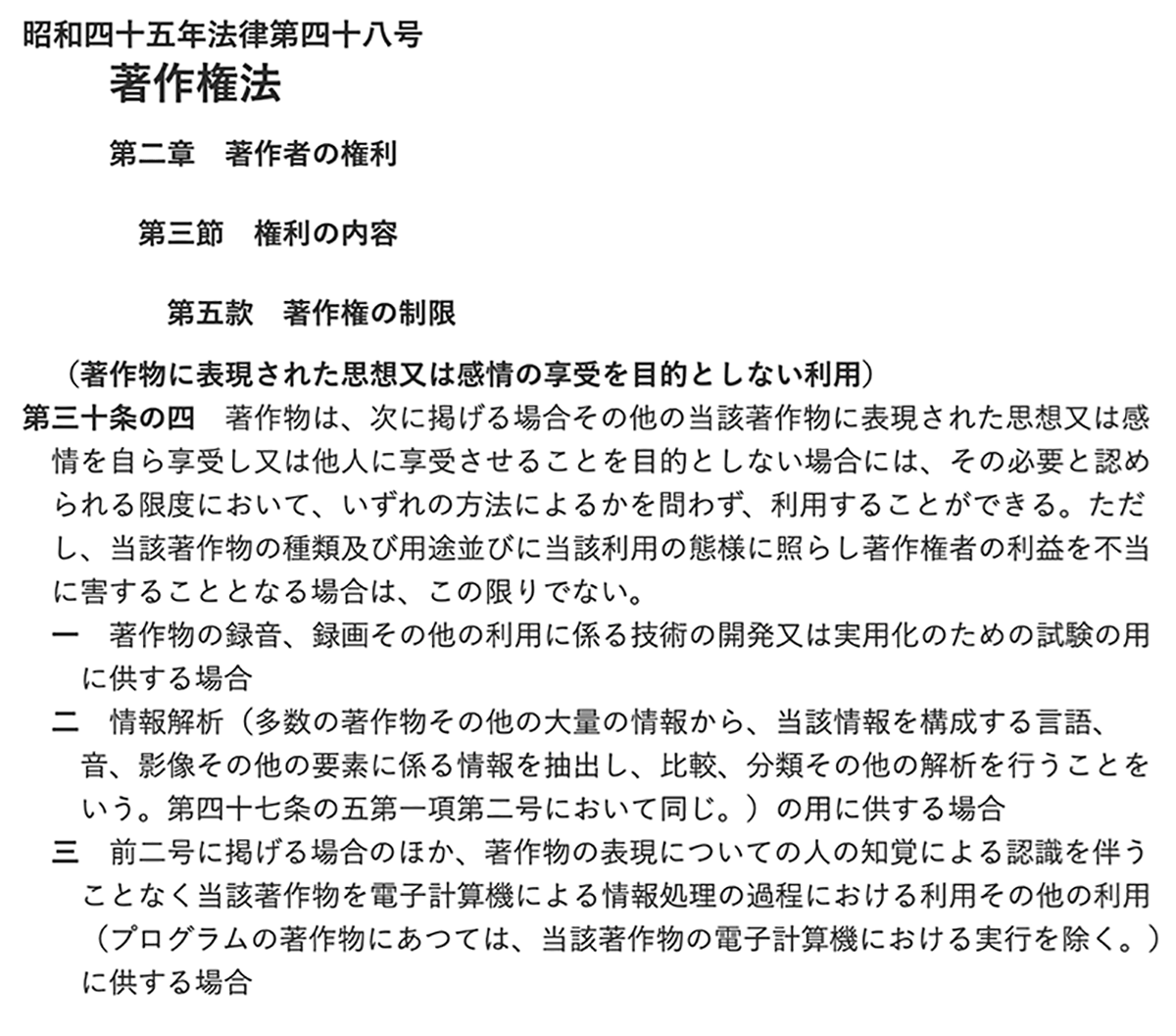 著作権法第30条の4(出典:e-Gov法令検索)