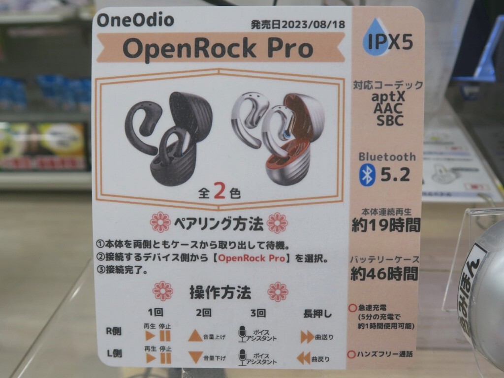 耳を塞がないオープンイヤーデザインを採用する、OneOdioのワイヤレスイヤホン「OpenRock Pro」がe☆イヤホン秋葉原店本館にて販売中。店頭価格は1万6630円だ。