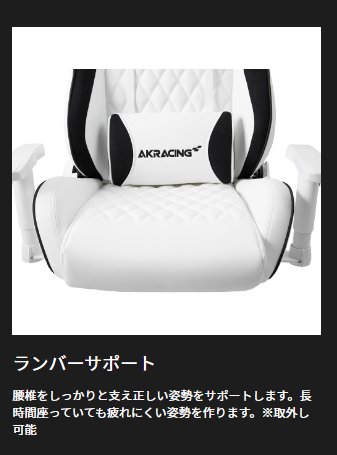 ゲーミングチェアといえど、長時間利用していると体への負担は当然生じる。だが、PINONはそのダメージを最小限に抑えるため、腰椎を支えるランバーサポートや、首と頭を支えるヘッドレストが付属している。