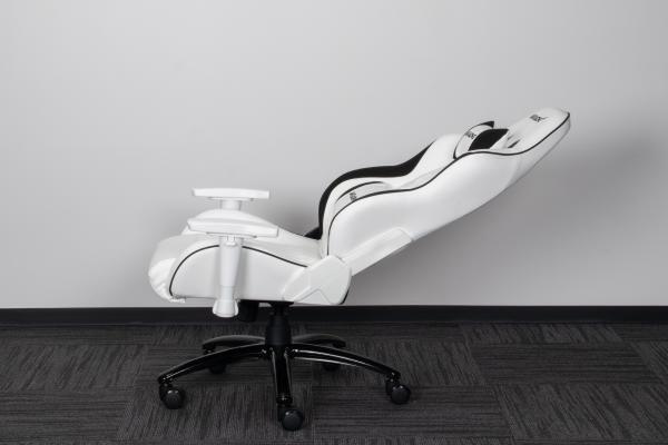 とはいえ、緊張状態を維持しながらゲームを遊んだり、長時間の作業や勉学に励むと体だけでなく精神的にも疲労を感じてしまうだろう。そこでぜひ利用したいのが背もたれを最大150度まで倒すことができるリクライニング機能だ。座面底部(右側)にあるレバーを引くと背もたれを倒すことができ、そのままカラダを伸ばしたり、ちょっとしたシエスタ(昼寝)を決め込むことができる。