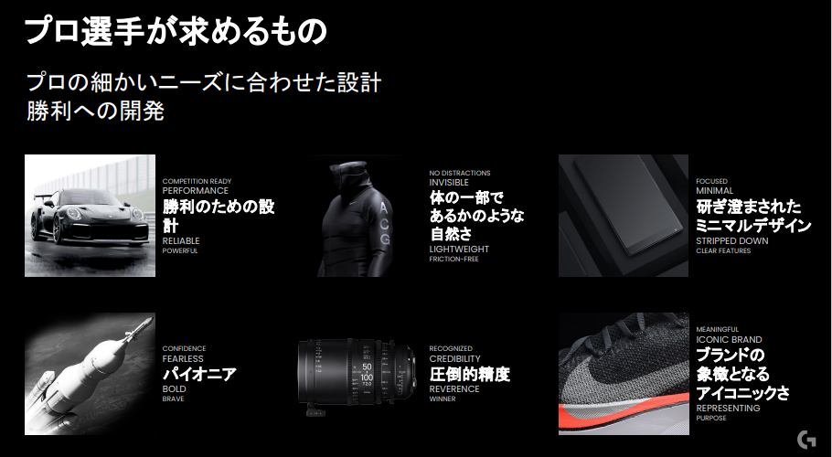 eスポーツのプロシーンでは、タイトルによっては突き詰められた競技となってくるため、1人1人のスキルだけでなく、コミュニケーションや集中力といった部分が勝敗をわけることもある。そのため、G PROが目指すのは、製品の感覚が消えてギアを感じないくらい集中できるほどフィットする製品とのことだ。