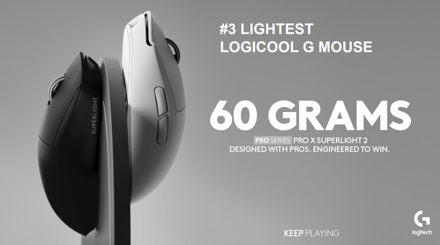 PRO X SUPERLIGHT 2 LIGHTSPEEDは、人気だった従来シリーズの形状や、ボタンを最小限に抑えたシンプルなデザインはそのままに、スイッチやセンサーが進化した、正統後継モデルとなる。