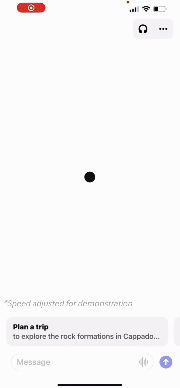 UIを見ると、ユーザーが音声を入力している際には大きな円が、ChatGPTが音声で回答している際には4つの楕円が表示されるようだ。