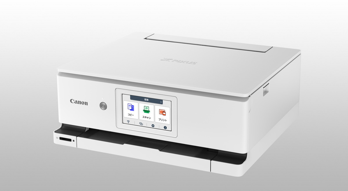 印刷速度はカラー文書で10ipm(毎分10枚)、モノクロで15ipm、L判フチなしの写真は約18秒。インクは4色ハイブリッドの一体型インクタンクで、ランニングコストはL判フチなしで約29円、キヤノンオンラインショップ価格は1万8150円。