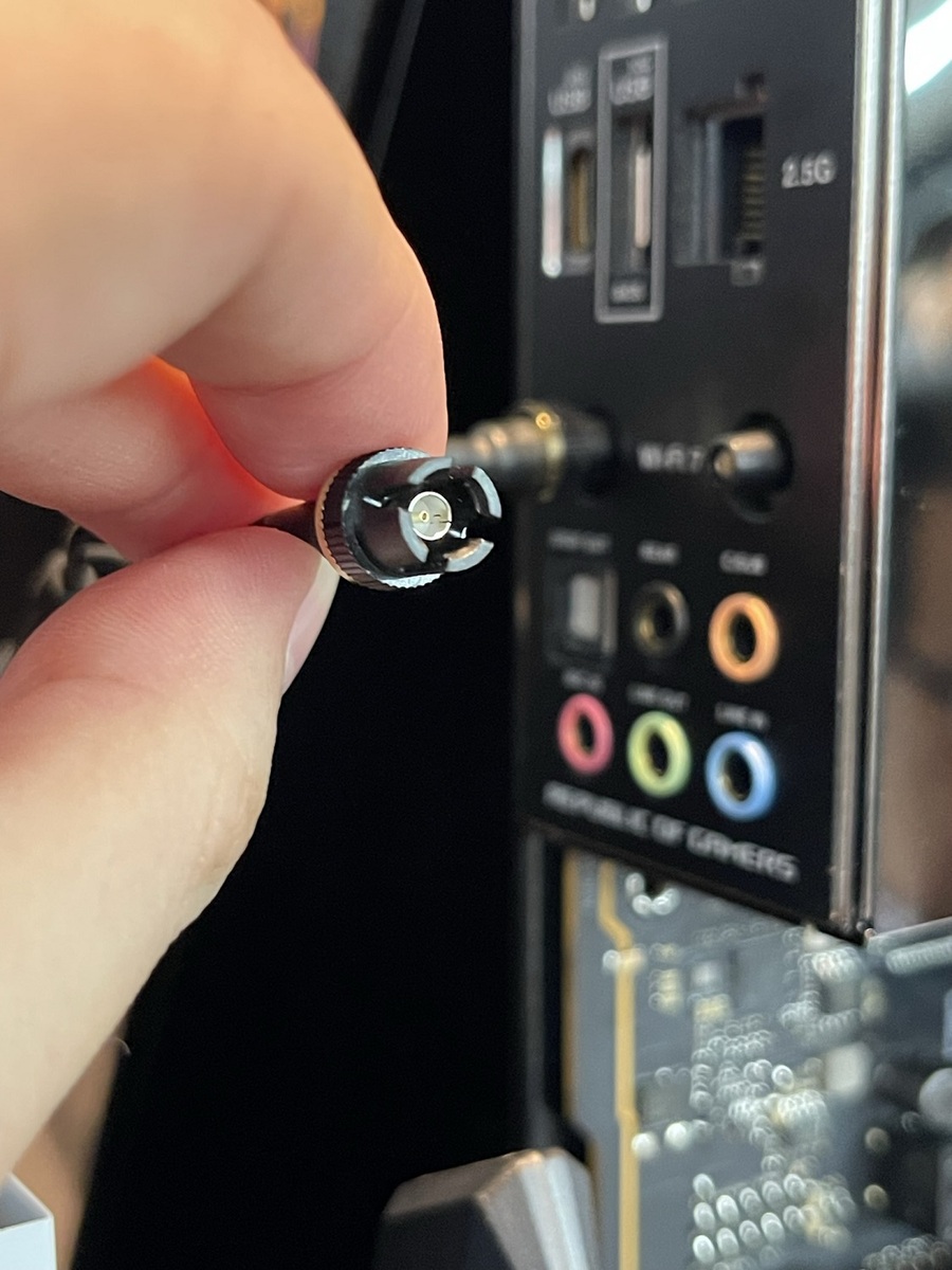 今回発表されたモデルの特徴はほかにもあります。その1つで筆者が最も感動したポイントは、アンテナのワンタッチ化。従来、マザーボードの無線機能用アンテナは端子に挿し込んでから、端子まわりのリングを回して固定する必要がありました。
