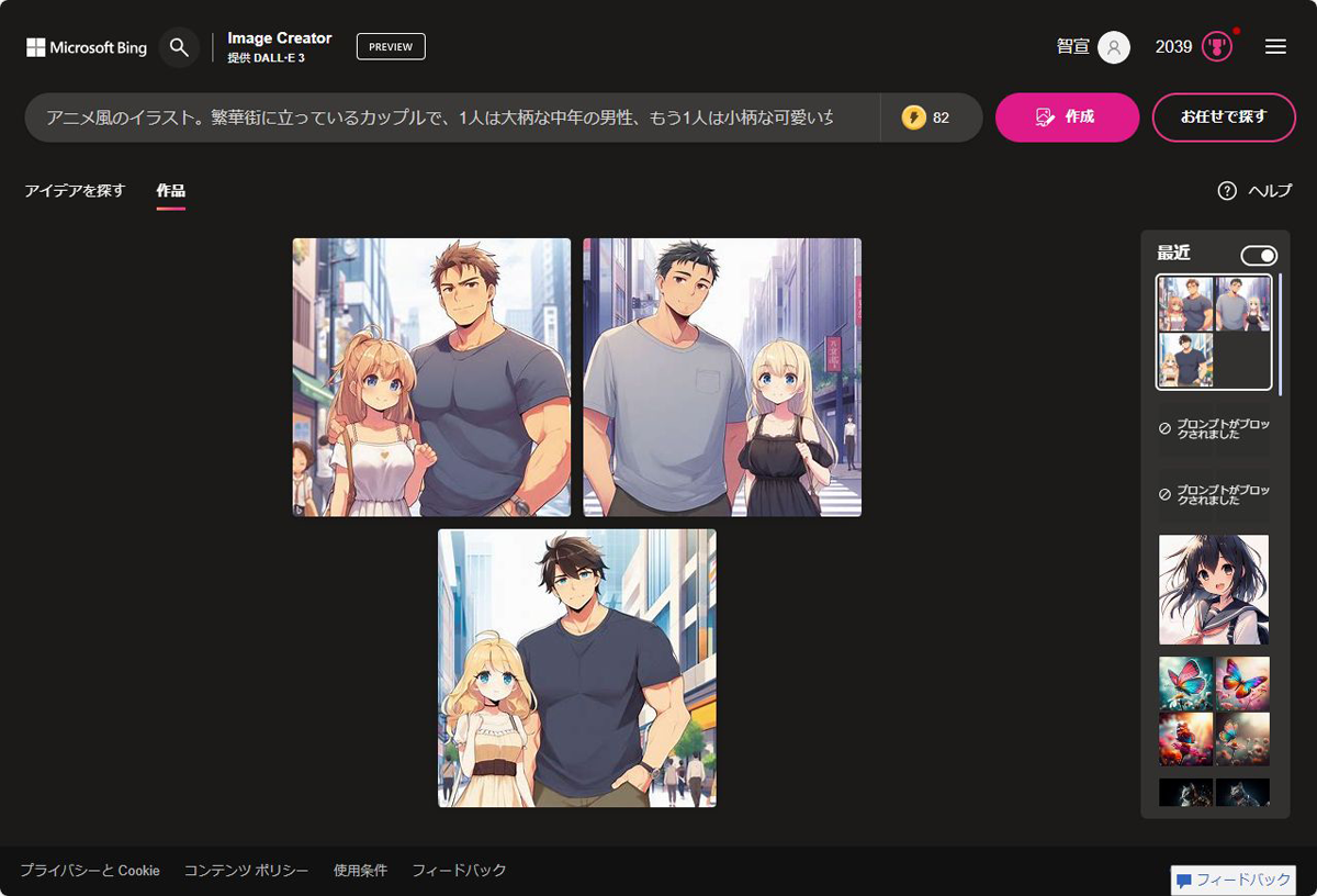 健全な画像しか生成できないようになっており、少しでも怪しい言葉が混じっていると、「安全でない画像コンテンツが検出されました」と表示される。