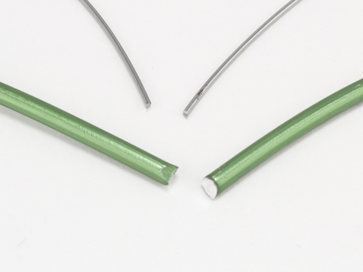 最後は、針金。製品情報としては、銅線1.6mmと針金1.2mmとありますが、この通りのものを切るのはあまり面白くないので、手元にあったアルミ3mmと、ピアノ線0.9mmで試してみました。