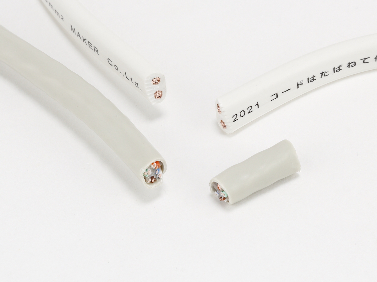 太めで切りにくいもう一つの素材例として、ケーブルも試してみましょう。手元にあった、電源タップのコードと、LANケーブルを切ってみました。どちらも普通なら、迷わず工具を使うべき対象です。