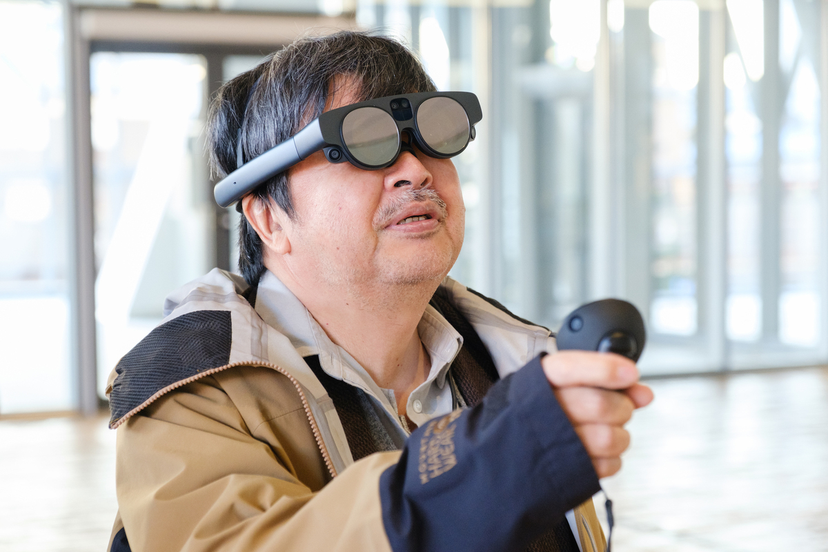 横山隆之氏(以下、横山) 「Magic Leap 2」です。以前は「nreallight(現XREAL Light)」を使っていました。今回Magic Leap 2を選んでいるのは、外で体験するからなんです。ほかのスマートグラスだと、外光で白飛びしてしまって見えないことが多かったんですよね。