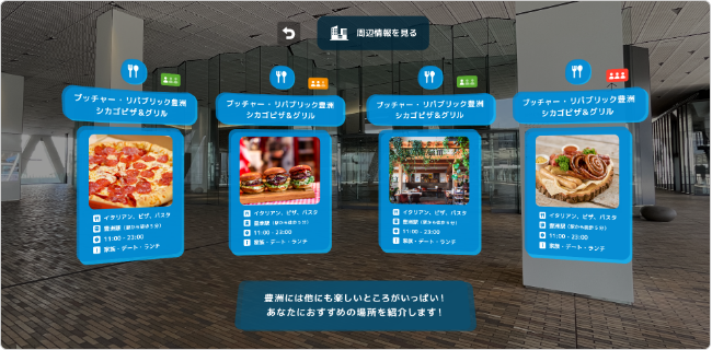 谷口 お店の上に浮かんでいる説明のところでコントローラーのトリガーを引いてもらうと、商品やお店についての情報がさらに表示されるようになっています。
