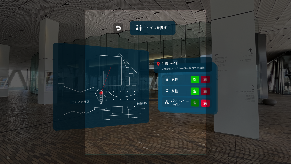 MRガイドアプリを体験「トイレはこちら」が浮かんでいる