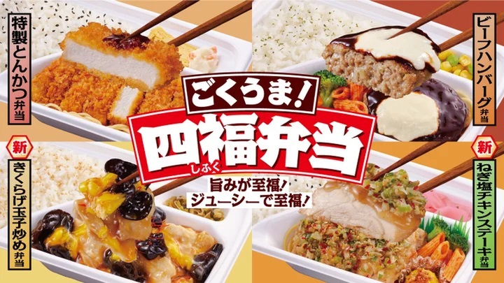 四福弁当はただ今4品が出揃って発売中! とんかつ弁当やハンバーグ弁当が今までよりちょっとお手頃なので、日々の生活の中で、少しだけ特別感ある食事を楽しみたい時に手が伸ばしやすいですよ!