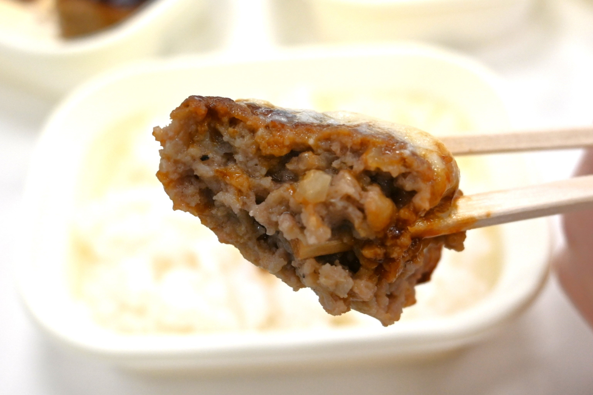 ハンバーグ弁当は、お肉の柔らかさにびっくり。さすが、牛肉100%。お弁当に入っているハンバーグで牛肉100%って珍しいです。想像した以上に極上の味を楽しめます。