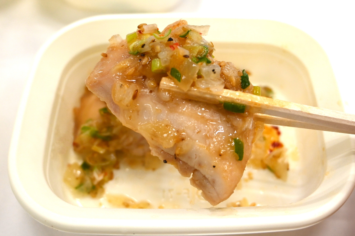 ねぎ塩チキンステーキ弁当は、香味野菜のシャキシャキした食感や、後を引く塩ダレがたまらないです。鶏肉が、甘すぎず自然のおいしさなのが、好印象。