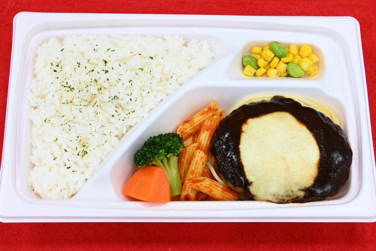 さらに、内容の見直しも。例えば従来のハンバーグ弁当では、ハンバーグの他、エビフライなど他のメイン具材も入っていましたが、新ハンバーグ弁当では盛り付けはシンプルにして、その分、ハンバーグは牛肉100%へと変更(従来は牛肉100%ではなかった)。お値打ち感とこだわりの味わいの両方を実現しました。