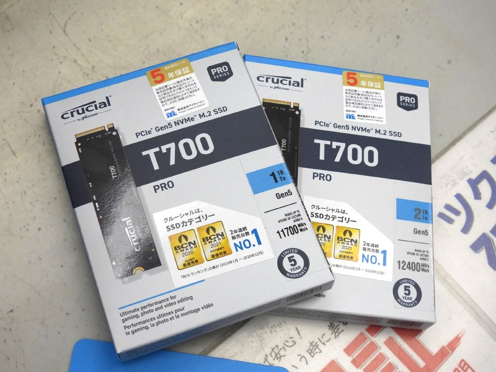 Crucial T700 ヒートシンク非搭載2TBが2820円安の4万5980円、1TBが4210円安の2万4970円で特売されている。