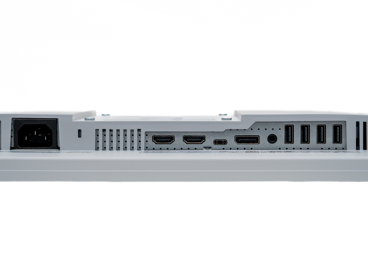 「L27h-4A」は、映像入力端子としてHDMI 2.1を2基、DisplayPort 1.4とUSB Type-Cをそれぞれ1基搭載しているほか、USB Type-A×4のUSBハブ機能も装備する。そのためディスプレイのUSB Type-A端子にキーボードやマウスなどのUSB機器を接続しておくと、パソコンとディスプレイをUSB Type-Cケーブルでつなぐだけでそれらの機器を利用できるようになって便利だ。