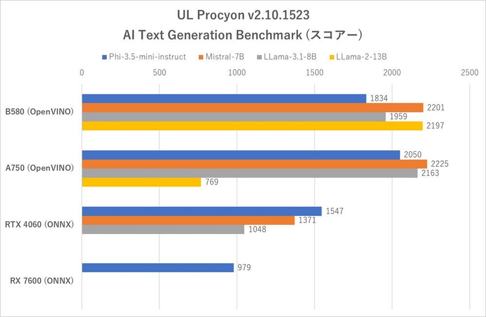 AI処理においてもB580は強い