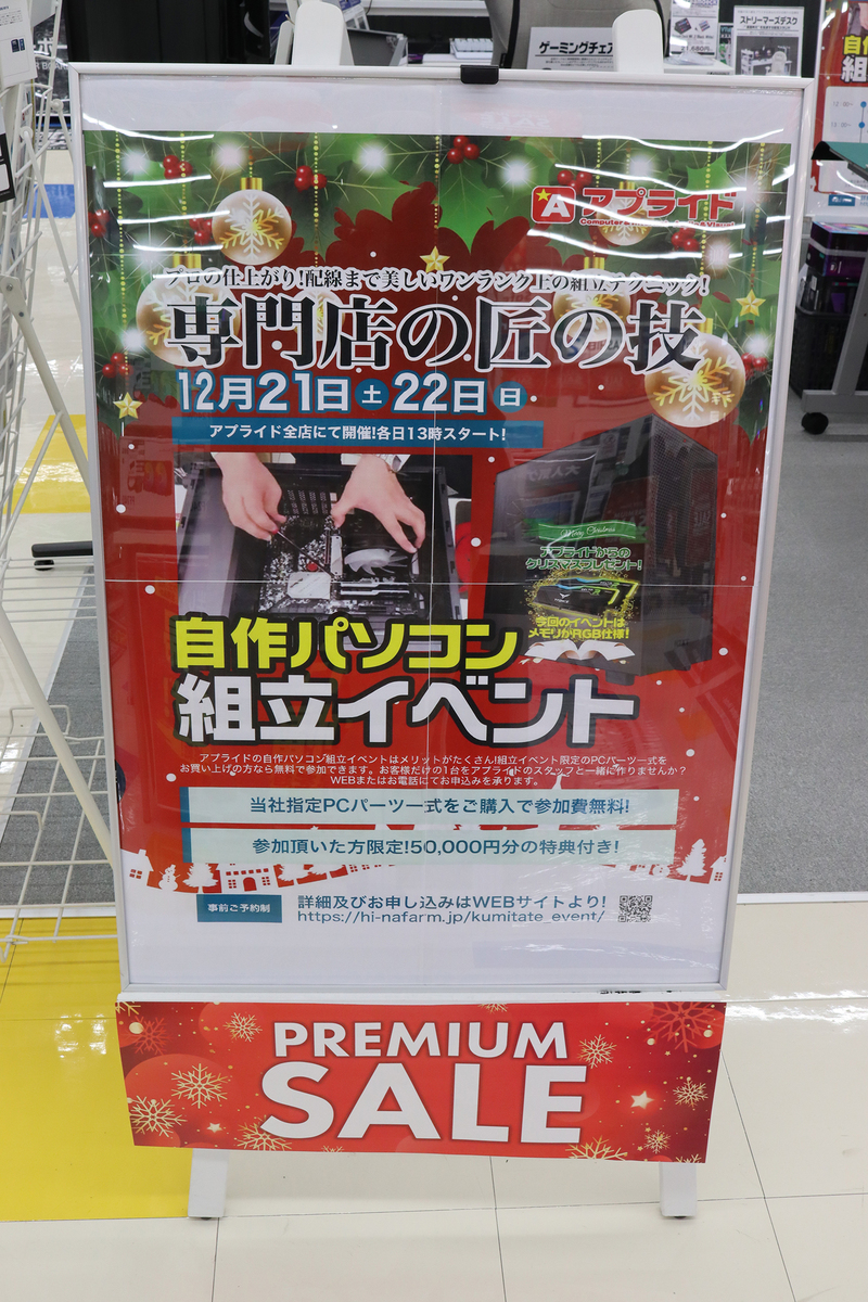 パソコン専門店・アプライドは、12月21日・22日の両日、自作パソコン組み立てイベントを実施。全国展開するアプライドの全店舗で同時に開催した大々的なイベントで、9月、11月に続いて3回目となります。