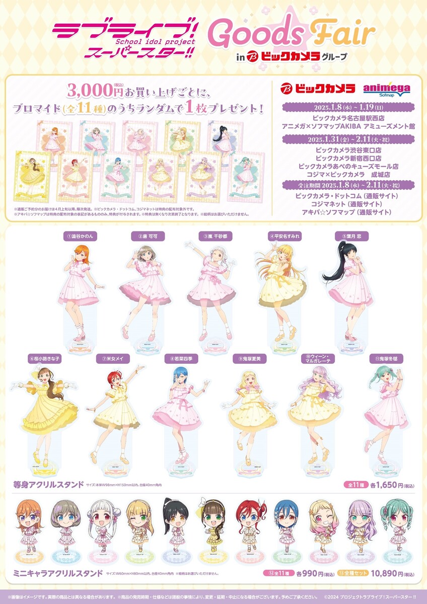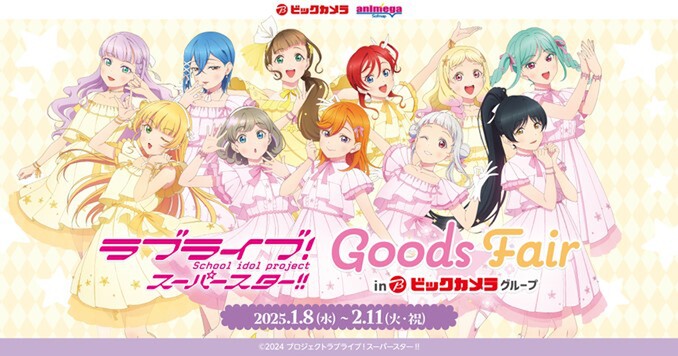 ビックカメラは、「ラブライブ!スーパースター!! Goods Fair in ビックカメラグループ」を1月8日から2月11日まで開催する。対象店舗はビックカメラ名古屋駅西店、アニメガ×ソフマップAKIBAアミューズメント館、ビックカメラ渋谷東口店、ビックカメラ新宿西口店、ビックカメラあべのキューズモール店、コジマ×ビックカメラ成城店などが含まれる。