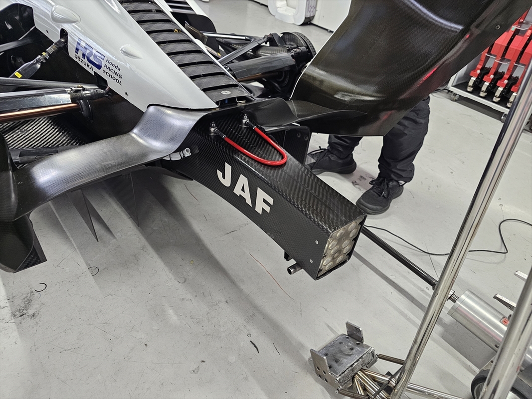 レーシングカーは真っ直ぐ走ってより、コーナリングしている時間のほうが圧倒的に長い。だから旋回中にG(重力)がかかって、常に重量バランスが変動しているため、どこに重量物を置くかが非常に大事になる。ドライバーが中心に配置されているのも、そのためだ。現在、同チームのドライバーを務める、牧野任祐(まきの ただすけ)選手も「あるのとないのじゃ、クルマの動きが全然違う」と教えてくれた。