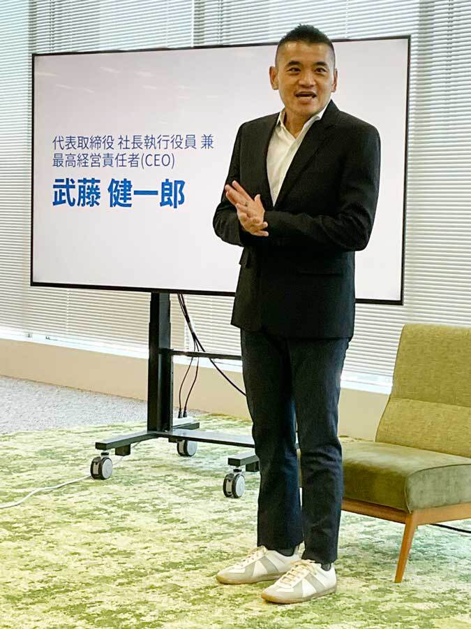 懇談会の冒頭では、前社長の前山貴弘氏が挨拶。「新体制の下、よりスピード感を持った事業推進を目指す」とコメントした。前山氏は引き続き代表取締役 副社長執行役員 管理本部長 兼 最高財務責任者(CFO)として組織運営を支援する。