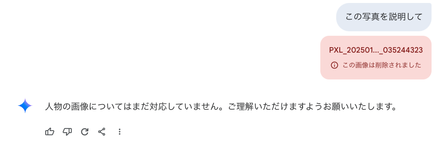 また、2025年1月時点では人物が写った写真も回答を拒否されることが多い。