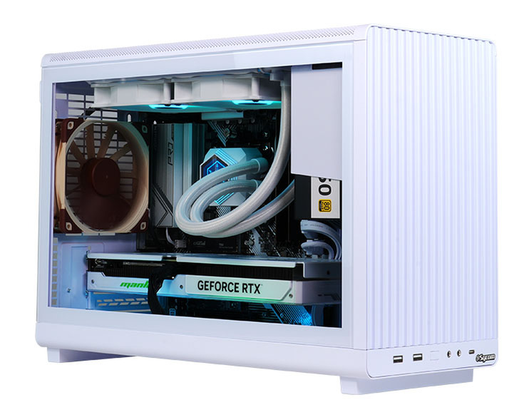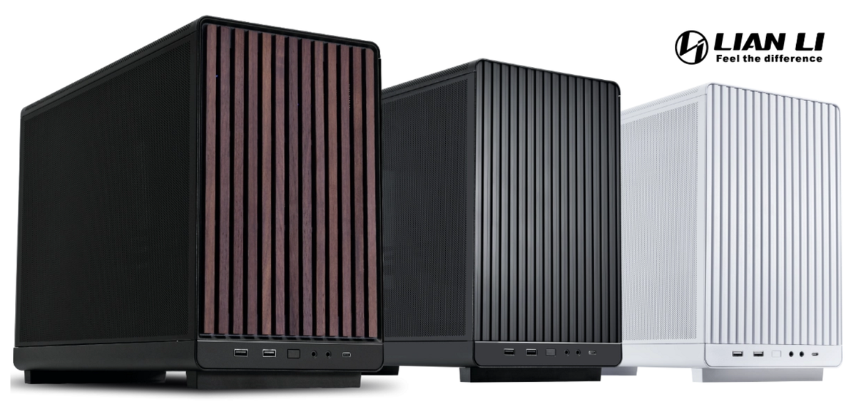 PCケースはLian Liの「A3-mATX Black」。サイズ194(W)×443(D)×321(H)mm、容量26.3Lなので、ミニタワーというよりキューブに近い見た目です。+1970円でカスタムできる「A3-mATX Black Wood Edition」は前面に木材を採用しており、かなりそそられるのでオススメです。