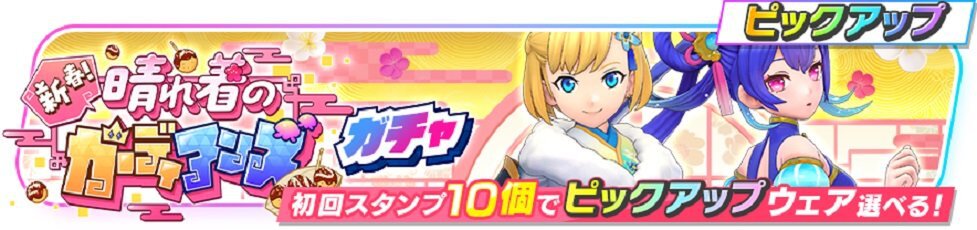 ノアとアーサーの新バトルウェアがピックアップで登場。また、新ウェポンチップや専用アクセサリーも登場する。さらにイベント期間中は「晴れ着のガーディアンズガチャ」が1日1回無料になる。ジュエルを消費して「10回まわす」でガチャをまわすたびにスタンプカードにスタンプが押され、押されたスタンプの数に応じて、さまざまな報酬を獲得可能だ。