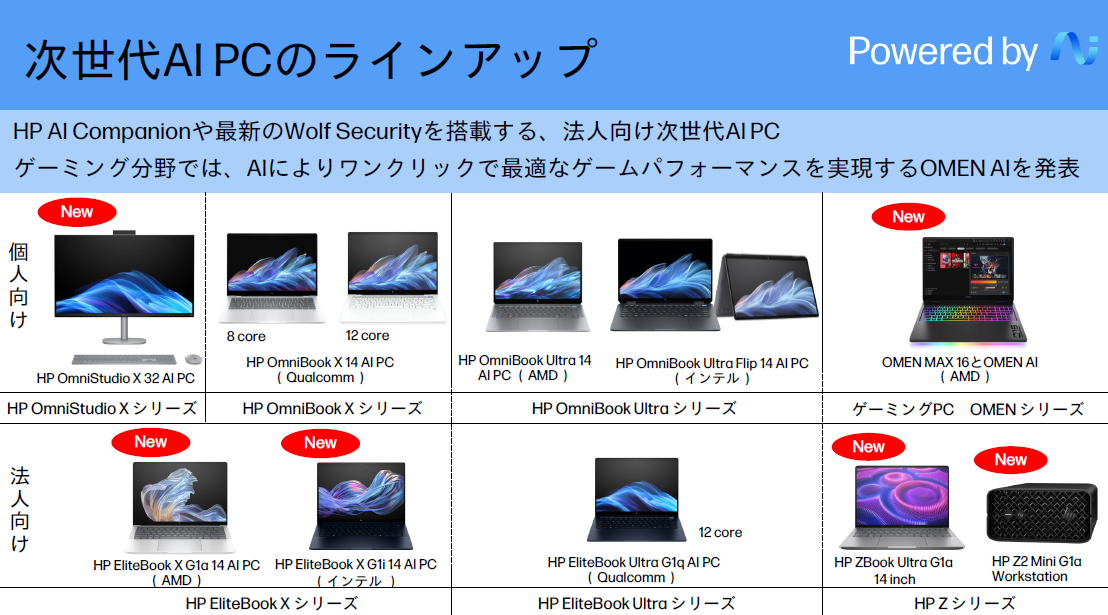 AI PCについては、法人向けノート「HP EliteBook X G1i 14 AI PC」が2月下旬に、「HP EliteBook X G1a 14 AI PC」が1月下旬に発売される。