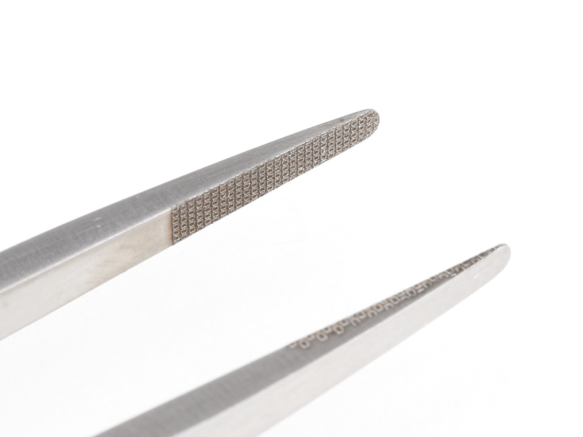 これはレーザー加工によってつけられた細かな溝。よくあるピンセットだと横方向に直線状の溝を細かく刻んでありますが、これでは縦方向の滑りは防げても、横方向には滑ってしまいます。
