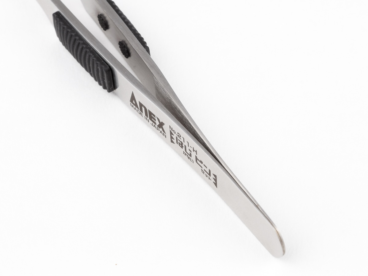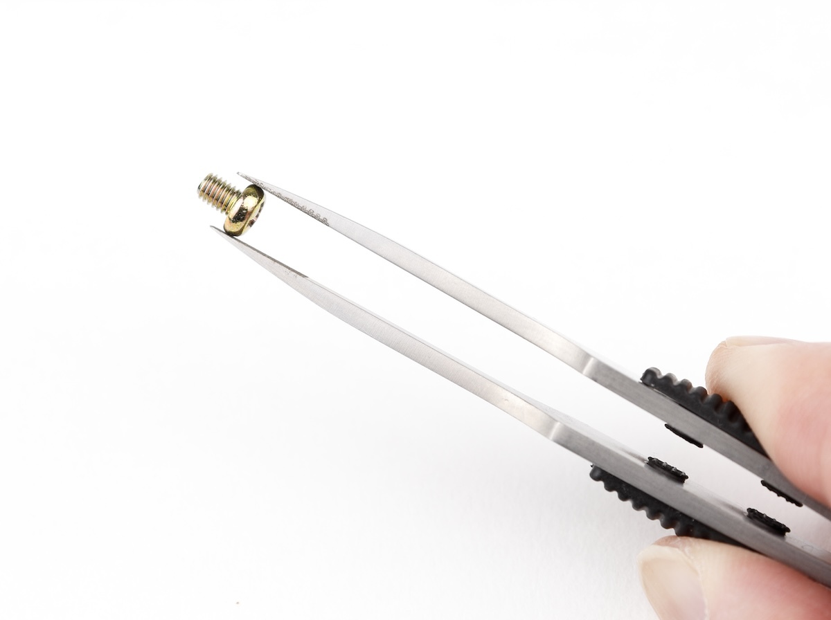 何の加工もないピンセットであれば、まず間違いなく滑ってはじいてしまい、どこかへネジが飛んでいきます。また、横方向に溝が刻まれたピンセットでも、ネジの向きを変えようといじっているうちに飛ばしてしまいがちです。