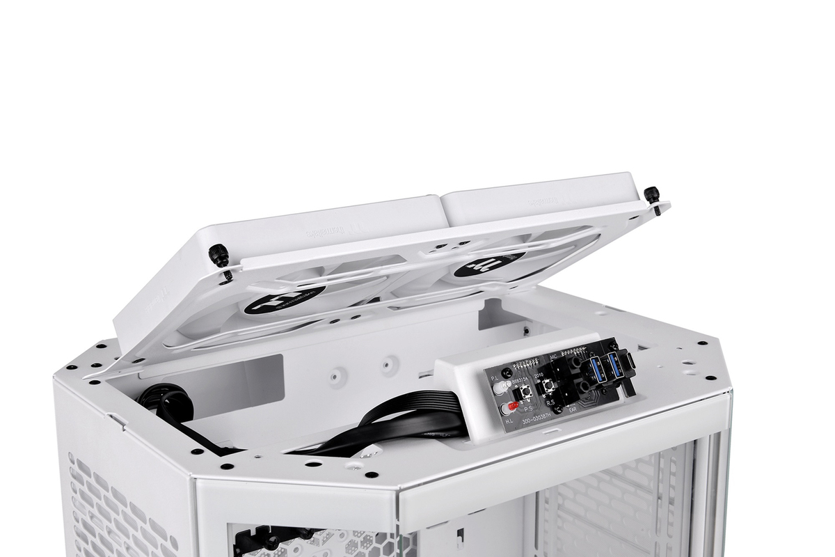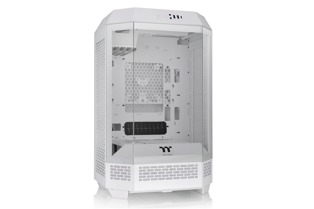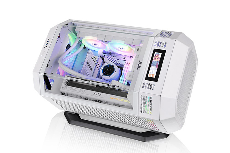 中央にマザーボード、その左右にビデオカードと水冷ラジエーターを配置する内部デザインで、PCパーツを魅せるThermaltake「The Tower 300」。組み立ての難易度は若干高くなるが、従来のミドルタワーで組んだPCとはひと味もふた味も違ったPCを組めるのだ。