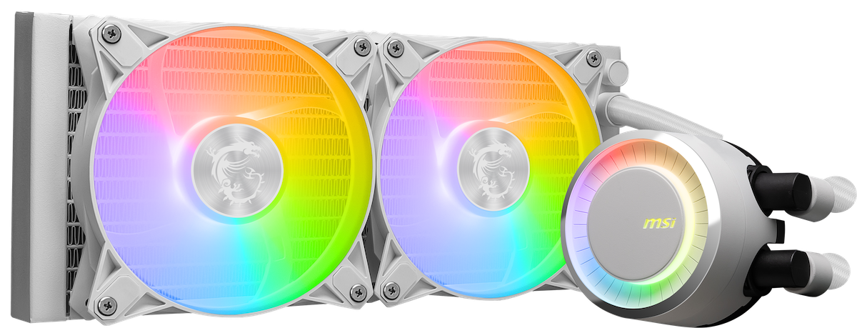 現在のMSIにはさまざまなホワイトPCパーツがある。今回はその一部を用意した。ビデオカード、電源、簡易水冷CPUクーラーだ。