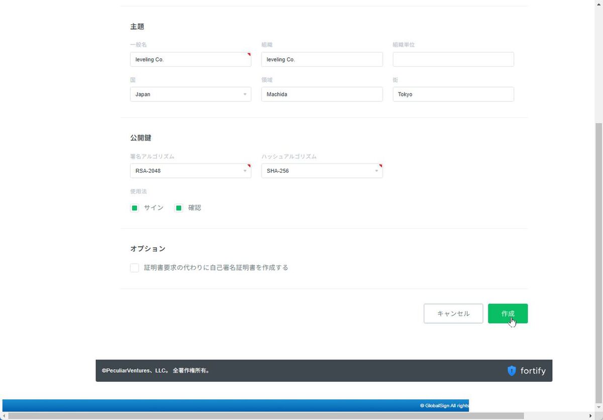ここで注意が必要なのが、「コモンネーム」とメールアドレスの入力。証明書利用者を識別するための情報を入力する際、「コモンネーム」は必須となっており、入力例として、「Taro Yamada」と入っていたのだが、ここに組織名を入力しなければならないのだ。筆者は最初、例に従って自分の名前を入れてしまい、最初から手続きをやり直す羽目になってしまった。