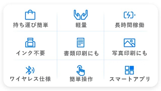ネット環境も電源も不要で、Bluetooth接続により、スマホやタブレットからそのまま印刷が可能です。
