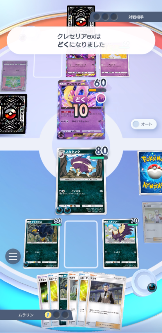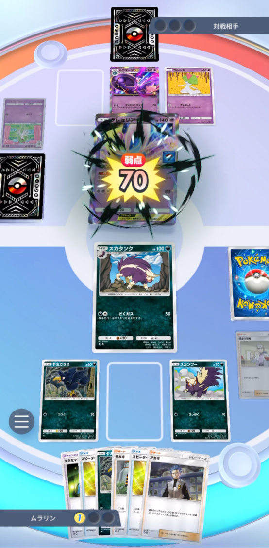 うまく2ターン目以降でうまくスカタンクが引ければ、そのまま攻撃を続けてしまって大丈夫です。