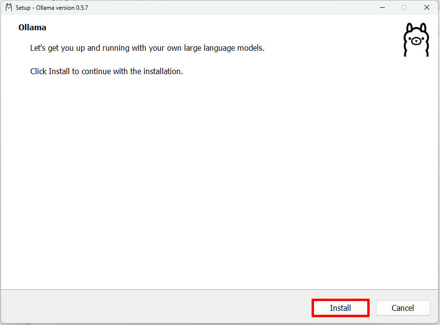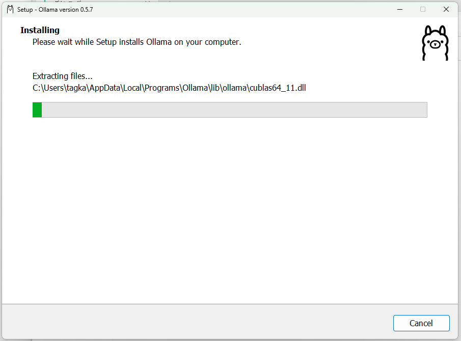 ダウンロードが終わったらインストーラー(OllmaSetup.exe)をダブルクリック。
