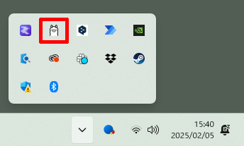 タスクトレイを確認するとOllamaのアイコンが表示されるはずだ。