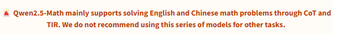 ここでベースとなった「Qwen2.5-Math-7B」のモデルカード(モデルの特徴や使用上の注意点をまとめたテキスト)を見てみると「Qwen2.5-Math mainly supports solving English and Chinese math problems through CoT and TIR. We do not recommend using this series of models for other tasks.(Qwen2.5-Mathは主に、CoTとTIRによる英語と中国語の数学問題の解答をサポートしています。このシリーズのモデルを他のタスクに使用することは推奨しません)」という重要な注意書きがあるのがわかる。