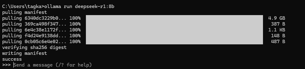 ダウンロードが終わったらさっそく下記プロンプトを入力。