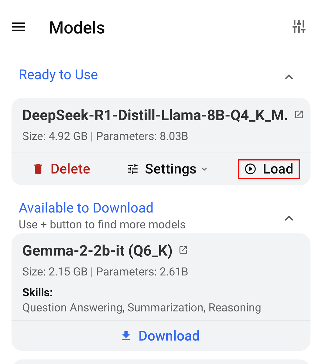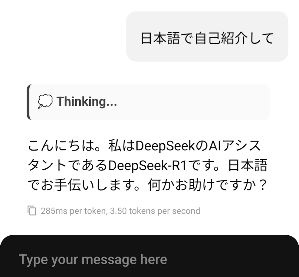 いつもの「DeepSeek-R1-Distill-Llama-8B」をタップ。