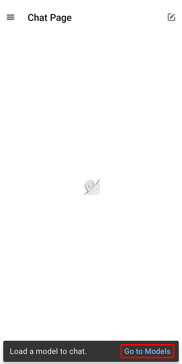 起動直後の画面、このままでは使えないので右下の「Go to Models」をタップしてモデルをダウンロードしよう。