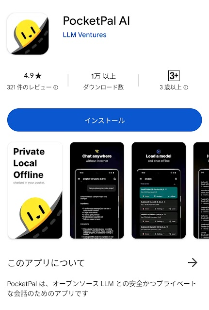 最後にスマートフォンアプリ「PocketPal AI」を試してみよう。AndoridはPlayストア、iOSはApp Storeからアプリをダウンロードしよう。なお検証したスマートフォンは「Google Pixel 9 Pro XL(16 GB RAM)」だ。