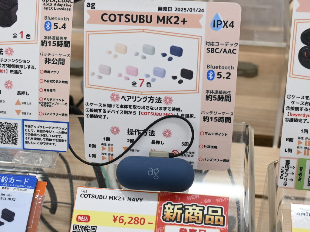 コンパクト設計かつ軽量なワイヤレスイヤホン「COTSUBU MK2+」がagブランドから発売。e☆イヤホン秋葉原店本館にて6280円で販売中だ。