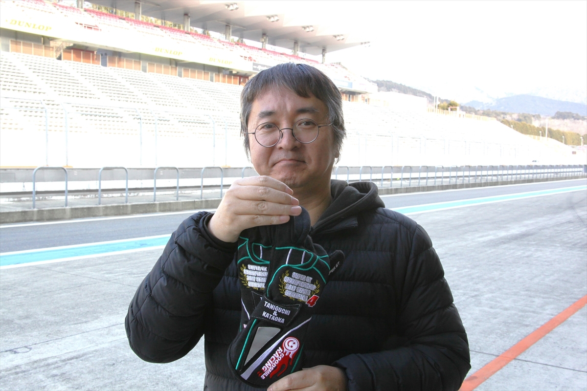 そういえば昨年は「自宅でレーシンググローブが見つからなかった……」と言っていたスピーディー氏。急遽筆者のグローブを貸したのですが、今年は大丈夫か聞いてみたところ「大丈夫、持ってきてる!」とのこと。不安だったので、筆者は今年も念のためグローブを持って行ったのですが取り越し苦労のようでした。